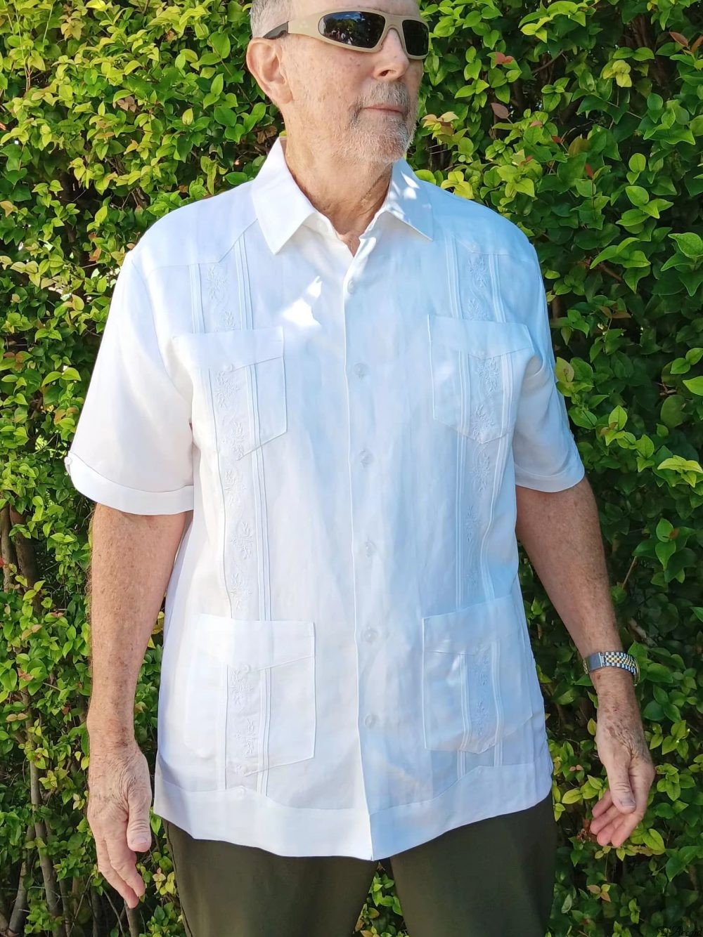 Men’s Authentic Embroidered Front Guayabera Style Shirt White D’Accord 2340