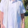 Men’s Mexican Wedding shirt white/beige embroidered D’Accord 5978. LIMITED EDITION. Made by artisans in Mexico. Gorgeous workmanship. Suitable for weddings .Guayabera events or simply because you will love the way you look and feel. Unique shirts only a few are manufactured. Buy yours now.